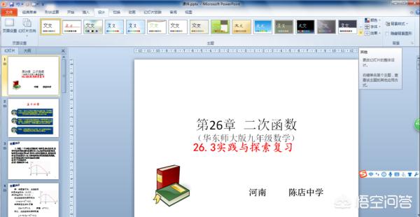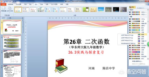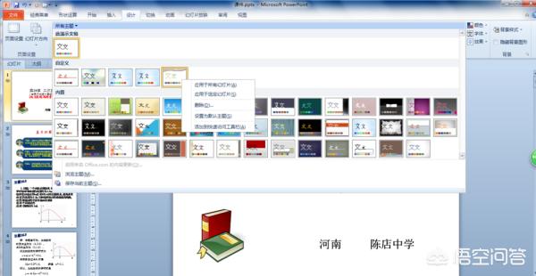 5、在弹出的下拉选项中根据需要进行选择,这里选择“应用于所有幻灯片”,该主题就应用到所有幻灯片了。