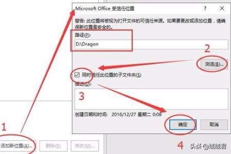 7、选择“添加新位置”,在弹出的对话框点“浏览”选择你的文件所在位置,勾取“同时信任此位置的子文件夹”,确定即可。