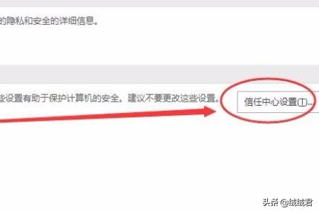 4、在选项中选择“信任中心”→“信任中心设置”,如下图所示: