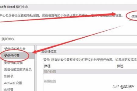 6、还是进入excel2016----选项----信任中心----信任中心设置,点击“受信任位置”,如下图所示;