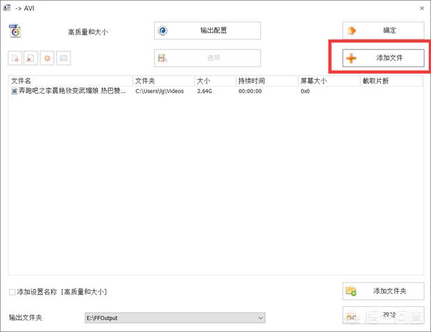 2.选择AVI之后,弹出这样一个对话框,点击添加文件,找到电脑中自己保存好的一个或者多个视屏文件,点击打开添加进格式工厂。