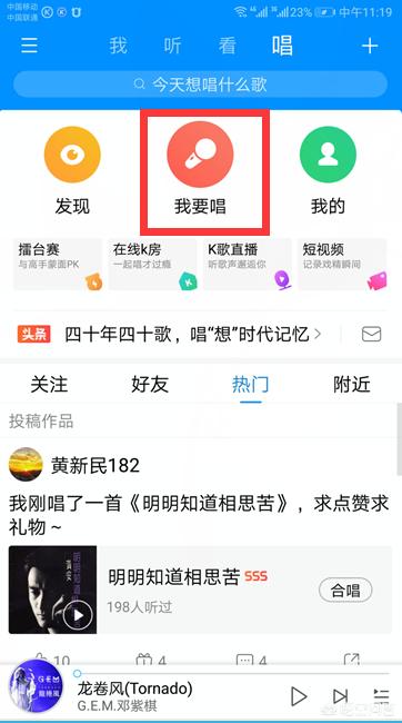 2、单击“我要唱”选项。