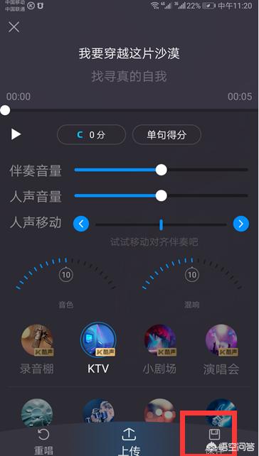 4、保存录音时,完美同步你的声音和伴奏。