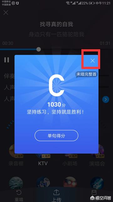 4、开始唱歌,唱完后,单击对号按钮。