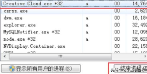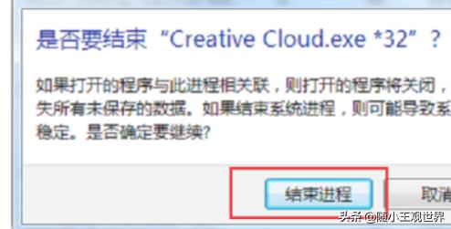 4.如果错误框不能关闭的话,重启一下电脑,然后先结束Creative Cloud.exe进程,再安装ps,或者多结束几次Creative Cloud.exe进程,如下图所示: