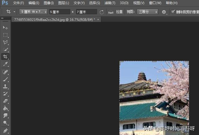 1、首先,我们在Photoshop中打开你想要处理的图片,然后在左边工具中选择裁剪工具