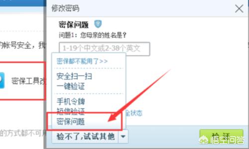 3、接下来我们选择“验不了,试试其他-密保问题”进行安全验证。