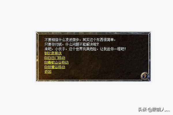 3、热血传奇不和其他私服一样,在热血传奇里,没有直接从比奇省传送至盟重的NPC。即使是比奇老兵也不行。比奇老兵只可以传送之白日门、毒蛇山谷、封魔谷和比奇商店。