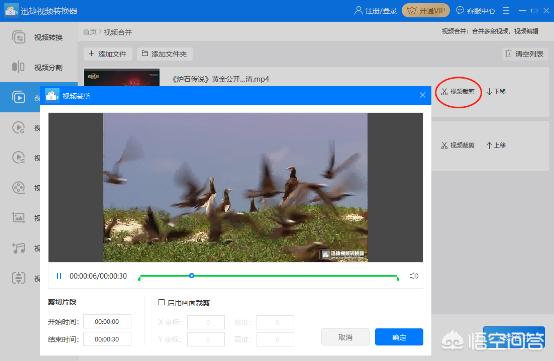3、若是只需要视频中的某个片段的话,还可以对视频进行剪辑,剪辑后再进行合并就行。