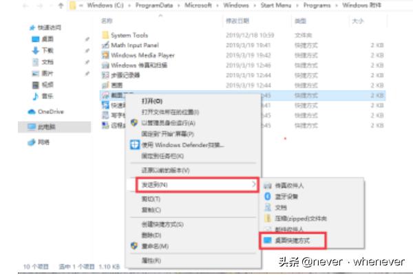 4.右键点击“截图工具”,在弹出菜单中选择“发送到/桌面快捷方式”菜单项