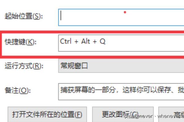 7.在打开的快捷方式窗口中,我们找到“快捷键”文本框,这时输入快捷键的按钮,比如Ctrl+Alt+Q,最后点击确定按钮。
