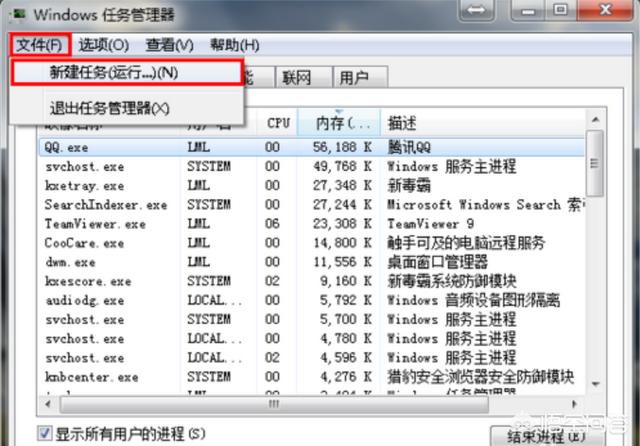 四、然后,“任务管理器”中找到“文件”点击“新建任务”。