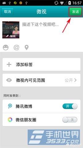 3)进入预览界面,点击“使用”按键,然后在微视界面中按“发送”按键。(如下图所示)
