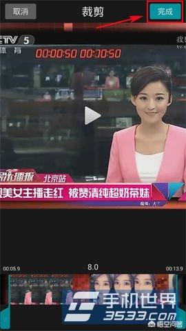 2)进入拍摄界面,点击“本地”按键,在选择好本地视频后,进入裁剪界面,当裁剪完成了,就按“完成”按键。