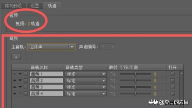 4.然后我们选择上方的轨道选项,我们可以根据自己的需要调整视频轨的数量和音频轨的数量并对音轨类型进行设置,调整好所有参数之后点击确定。