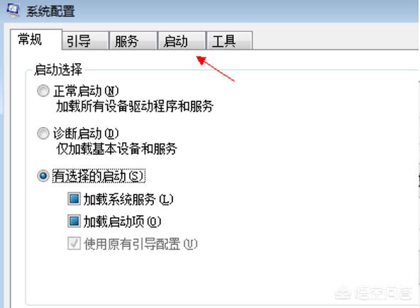 2、之后弹出的窗口,切换到上方的选项卡中的启动设置一栏: