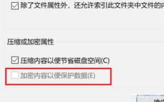 3、在弹出的设置窗口中,将红框中的“加密内容以便保护数据”前面的复选框选中,即可进行文件夹的加密。如果这里的选项是灰色的,说明电脑系统是家庭版的,微软没有开放这个功能,只能采用第二种方法,使用第三方软件。