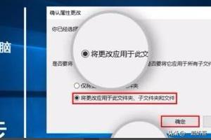 5、单击应用以后会弹出“确认属性更改”的窗口,在这里选择,将更改应用于此文件夹,子文件夹和文件,选完后点确定。