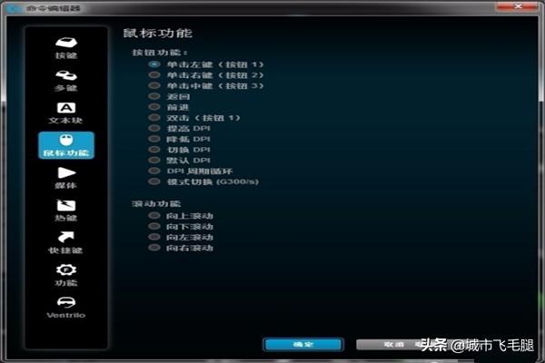 6、在弹出的命令编辑器中选择“鼠标功能-单击左键”,确定,即可