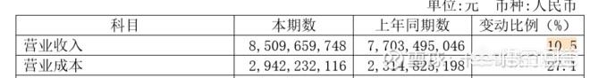 我们来看收入和成本的变动比例