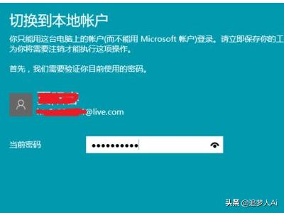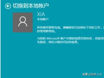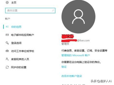 5、在你的信息界面可以看到你的名字和微软账户,点击蓝色小字体改用本地账户登陆