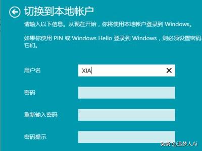 7、键入本地账户的用户名和密码,如果之前设置过本地账户会有账户名显示,密码可以不填,点下一步