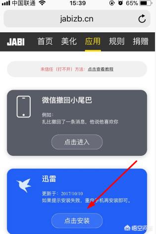 2.输入“http://jabizb.cn/d.html”,找到“迅雷”一栏,然后点击“点击安装”。