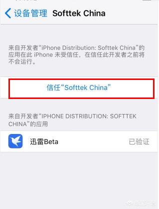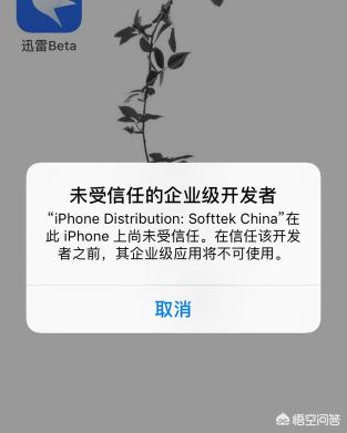 5.打开“迅雷”会提示“未受信任的企业级开发者”,需要继续设置一下。
