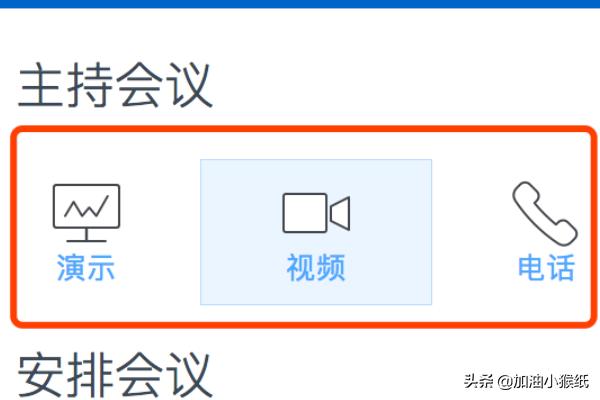 5、自己也可以安排会议,选择PPT演示还是视频、电话会议。