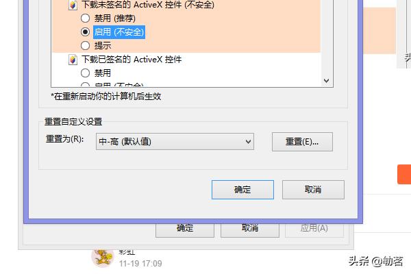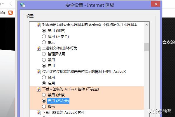 5、将鼠标滚动到列表的“下载”部分,然后找到“文件下载的自动提示”,一般是在最后的地方;将“文件下载的自动提示”下的“禁用”改为启用,点击确定,回到“安全选项卡”点击确定,设置完成后阻止框消失,直接弹出下载提示框,问题得到解决。