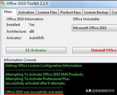 5、office 2010激活过程开始,直到其下方“Information Console”黑色区域出现“Office 2010 was successfully activate”,则表明office 2010已经激活成功。