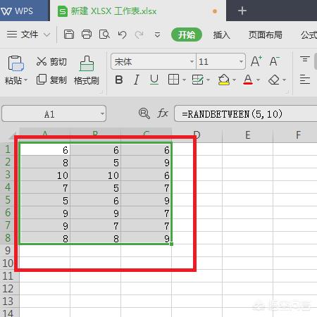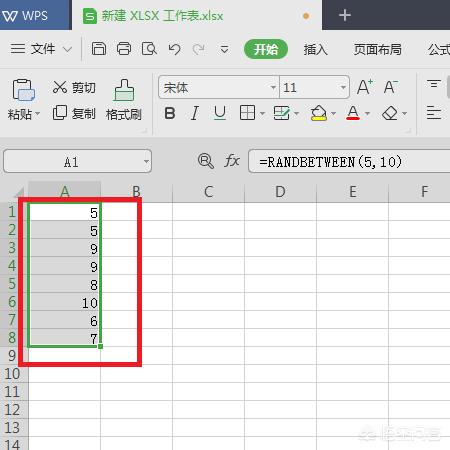 4、可以看到,工作中的目标单元格自动生成了一个5~10的数字。