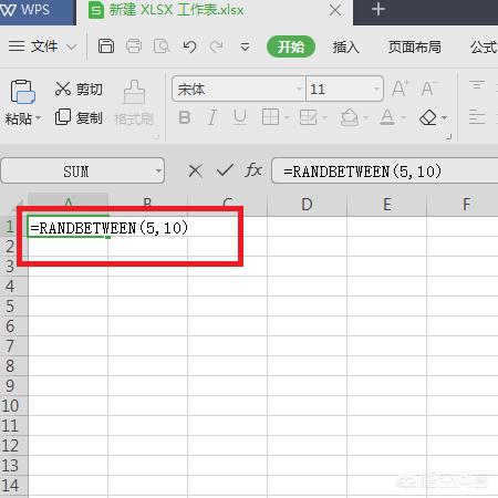 3、在单元格中输入公式“=RANDBETWEEN(5,10)”,然后点击键盘上的回车键。