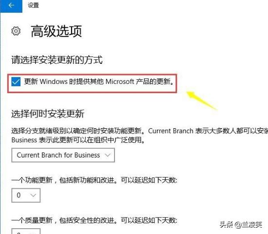 4、在高级选项中勾选更新window时提供其它Microsoft产品的更新,下次window是更新,如果有office更新补丁会顺带更新了,如下图所示。