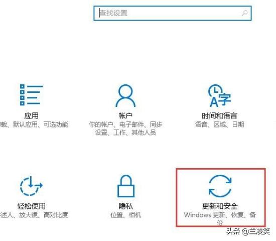 2、在设置界面我们选择更新和安全进入,如下图所示。