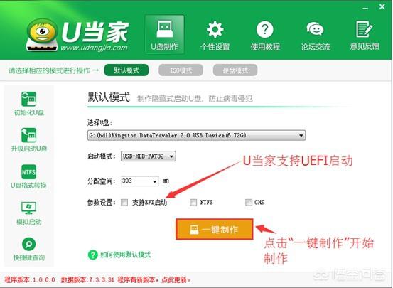 3、点击下面的“一键制作”按钮。(如果是电脑主板是UEFI的,建议勾选“支持EFI启动”):