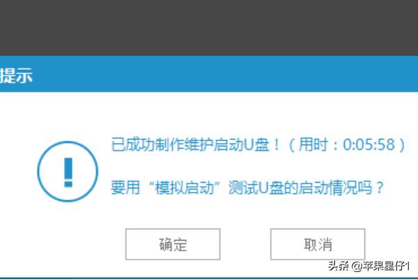 5、U盘启动盘制作过程很简单,无需其它操作,稍等一会即可看到成功的提示对话框。