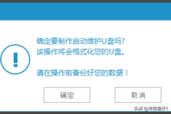 4、接下来会弹出提示框,点击“确定”即可(制作U盘启动盘会清空当前U盘所有数据,请做好备份)U当家会自动完成制作的操作,我们只需等待制作完成即可,至此U盘启动安装盘制作完毕,接下来大家可以用U当家进行系统安装以及维护系统。