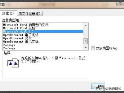 2、如果所示,选择Microsoft 公式3.0,点击确定。就可以根据需要插入公式了。