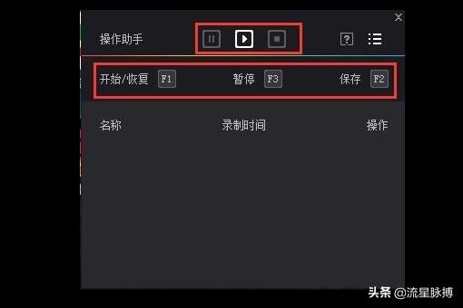 第二步:此时会打开该工具,工具界面有快捷键说明,对应上方可点击的按钮,需要记住这些说明,方便及时结束脚本录制。