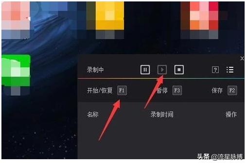 第四步:录制过程随时按键盘F3暂停,或点击两个竖线暂停键,暂时停止录制操作,再次按F1键,可以继续录制,所以有事或忘记下一步操作,为减少脚本操作时间,可以及时暂停。